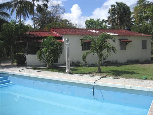 Family house with pool in a beautiful tropical garden. Living room, dining room, kitchen, two bedrooms, two bathrooms, terrace. Pool, little house for generator, water tank, storeroom, service room separated from the house. Title with demarcation (deslinde). |